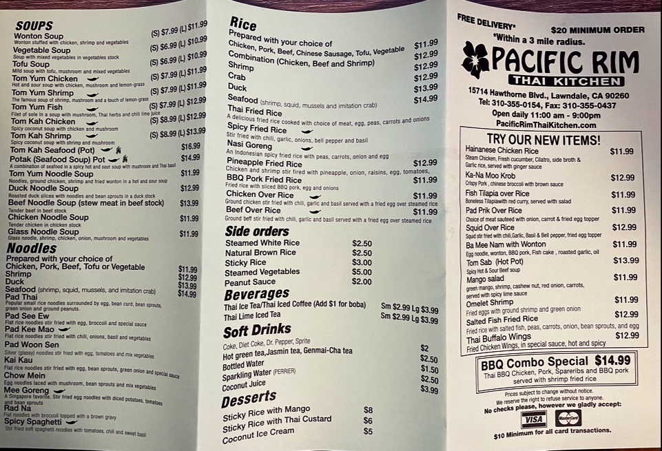 Welcome to Pacific Rim, a hidden gem located at 15714 Hawthorne Blvd, Lawndale, CA. This family-run restaurant is a testament to the rich flavors of Thai cuisine, serving delightful dishes that have both locals and visitors raving about their experiences.